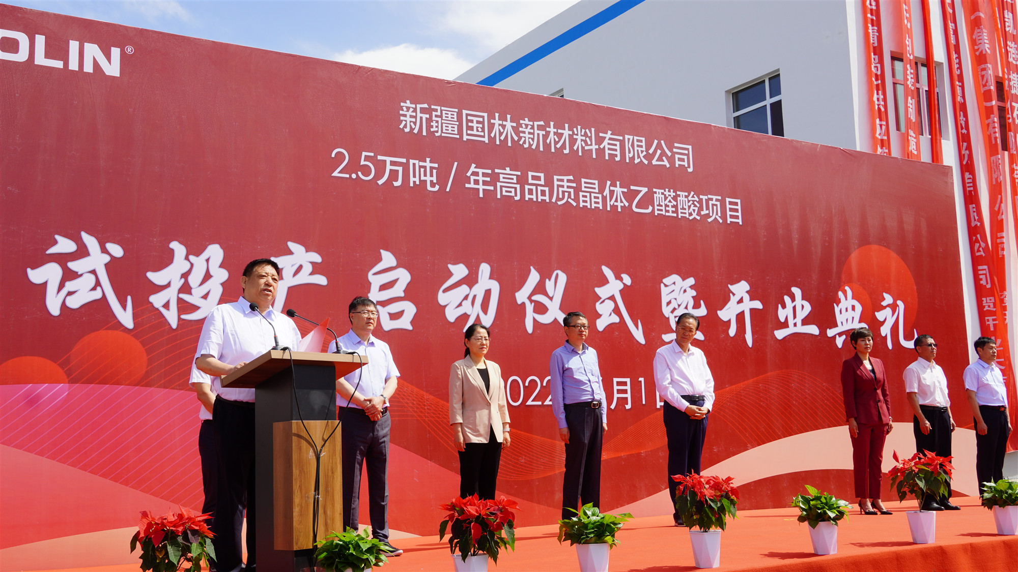新疆國林新材料董事長丁香鵬先生發(fā)表致辭,他表示,本項目的建成,不僅可滿足國內(nèi)醫(yī)藥、食品等行業(yè)對高純度乙醛酸產(chǎn)品的需求,也為我國傳統(tǒng)化工產(chǎn)業(yè)的轉(zhuǎn)型升級提供了新的技術,提高了我國以乙醛酸為原料的下游產(chǎn)品的市場競爭力。以此為契機,國林將繼續(xù)遵守八師石河子市的相關要求,秉承國林“真誠、求實、高效、創(chuàng)新”的理念,以“科技創(chuàng)新、產(chǎn)業(yè)報國”為根本,立足八師石河子市,為新疆產(chǎn)業(yè)技術升級和轉(zhuǎn)型做出應有的貢獻。